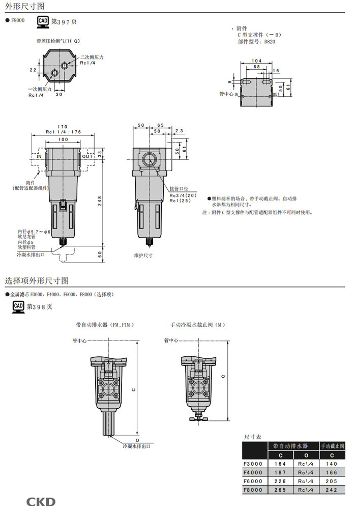 F1000-6,F1000-8,F3000-8,F3000-10,F4000-8,F4000-15,F6000-20,F6000-25,F8000-20,F8000-25,F4000-10,CKD空氣過(guò)濾器