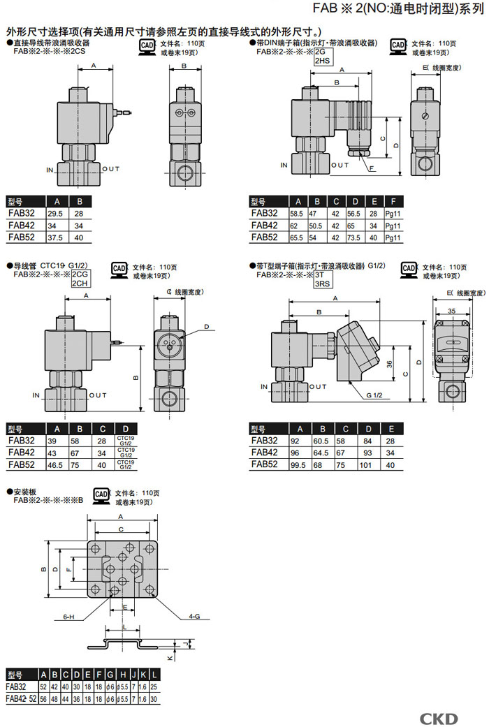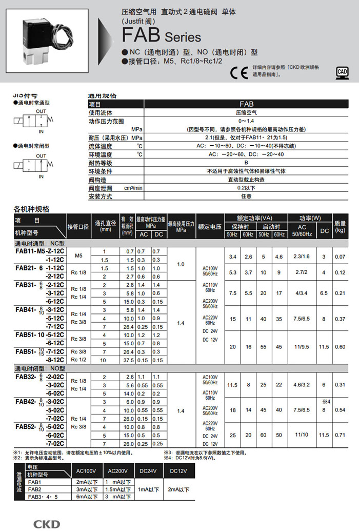 FAB11,FAB21,FAB31,FAB41,FAB51,FAB32,FAB42,FAB52,FAB11-M5-Z-12C,FAB52-10-7-02C,CKD直動(dòng)式2通電磁閥