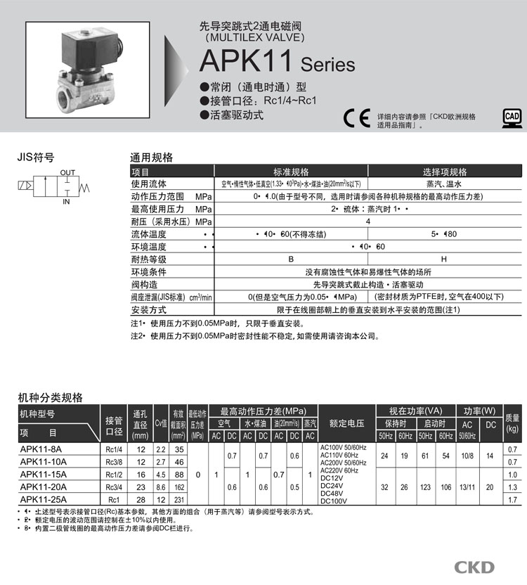 APK11-25A,APK11-25A,APK11-25A,APK11-25A,APK11-25A,CKD先導式2通電磁閥