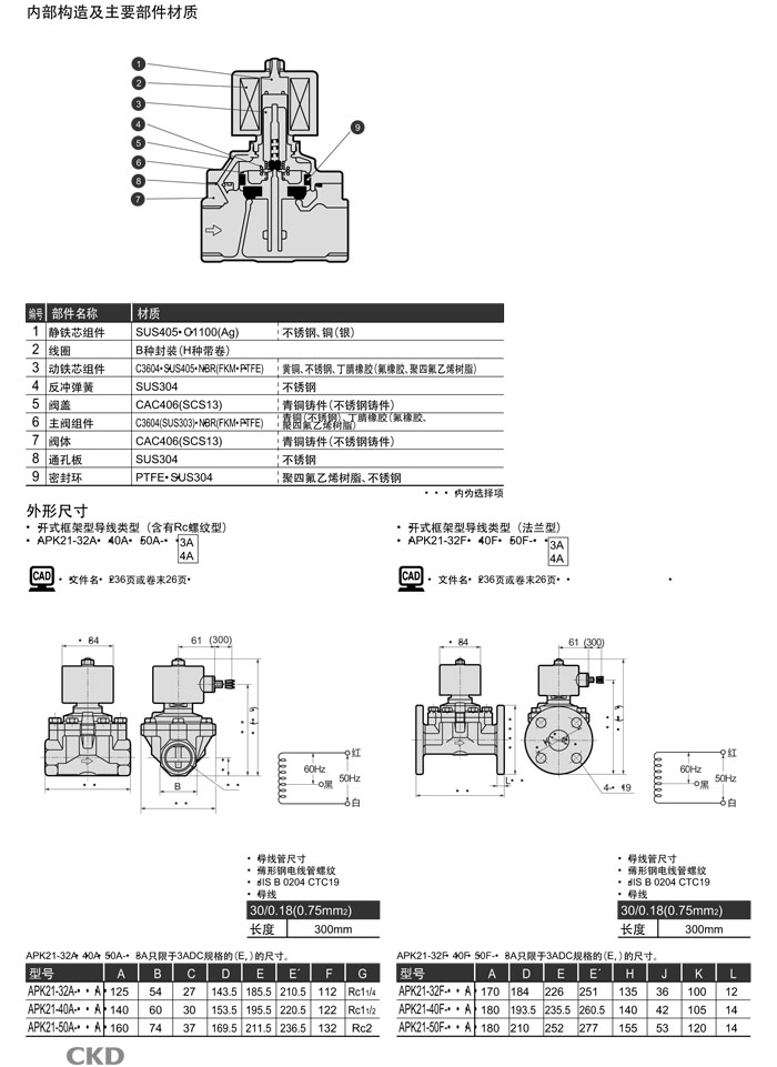APK21-50F-N4L,APK21-50F-N5A,APK21-50F-N5E,APK21-50F-N5F,APK21-50F-N5L,CKD先導式2通電磁閥