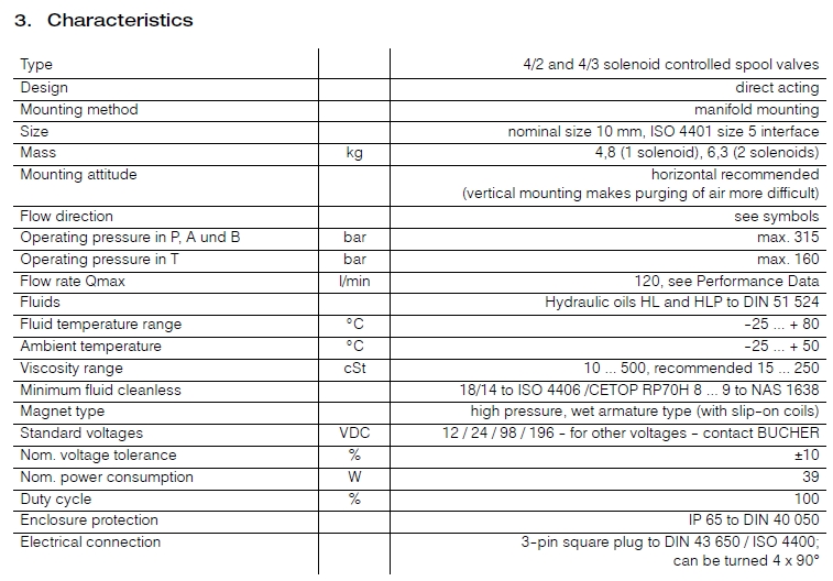 WEDE-43-AD,WEDE-43-B,WEDE-43-D,WEDE-42-G,WEDE-42-AD,WEDE-42-B,Bucher直動(dòng)式電磁換向閥