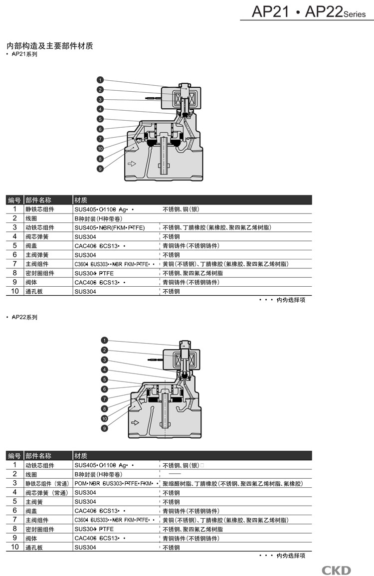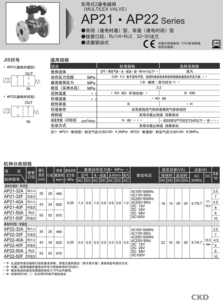 AP22-50F-N4A,AP22-50F-N4K,AP22-50F-N4H,AP22-50F-N5A,AP22-50F-N5K,AP22-50F-N5H,CKD先導式2通電磁閥