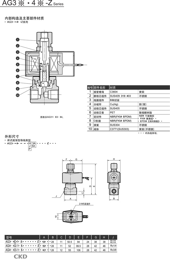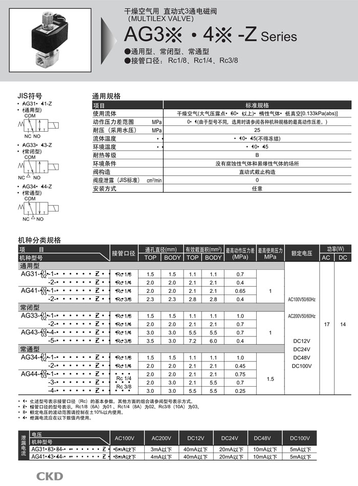 AG31-01-1,AG41-02-1,AG33-01-1,AG43-02-4,AG34-01-1,AG44-02-1,AG31-02-1,AG41-02-2,CKD直動(dòng)式3通電磁閥