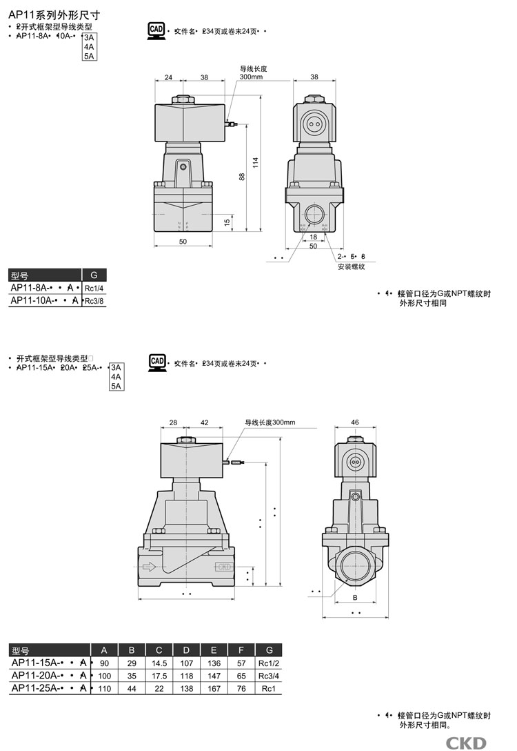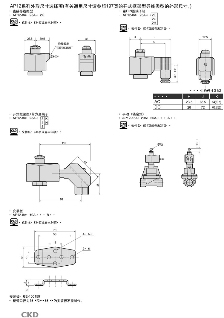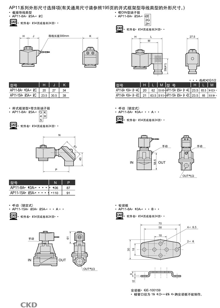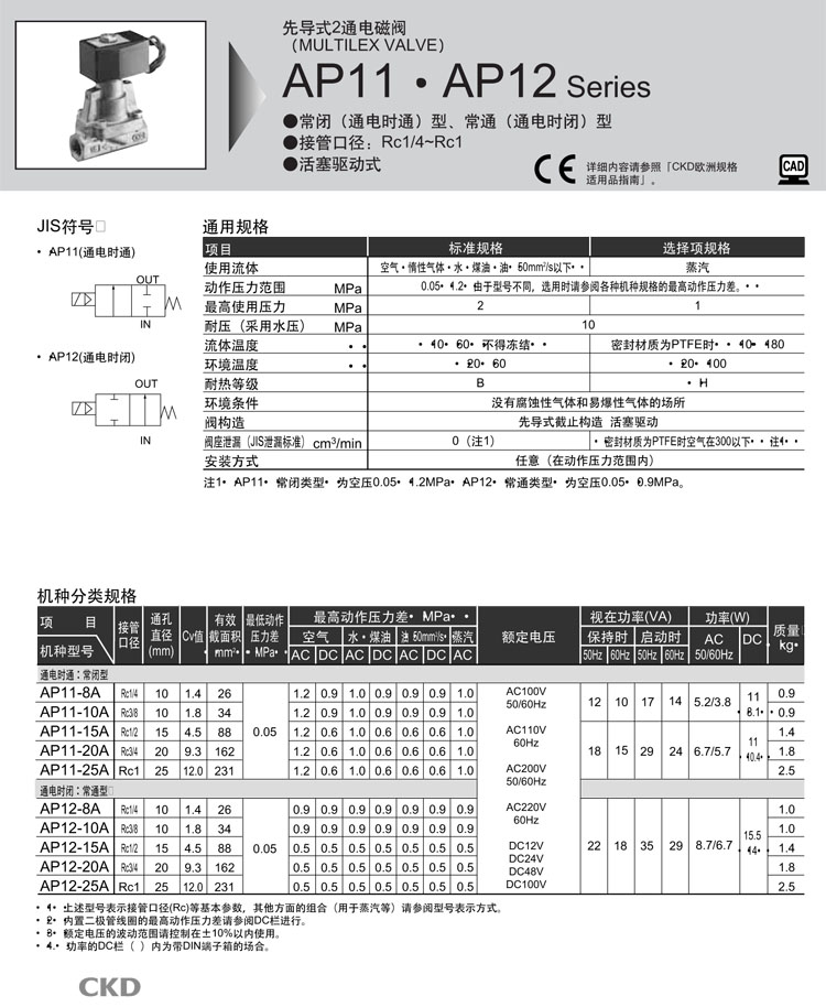 AP11-25A-N4A,AP11-25A-N4K,AP11-25A-N4H,AP11-25A-N5A,AP11-25A-N5K,AP11-25A-N5H,CKD先導式式2通電磁閥