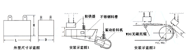 | 型號參數項目 | 適應帶寬 | 懸掛高度 | 適應帶速 | 物料厚度 | 重量Kg | 外型尺寸 | ||
