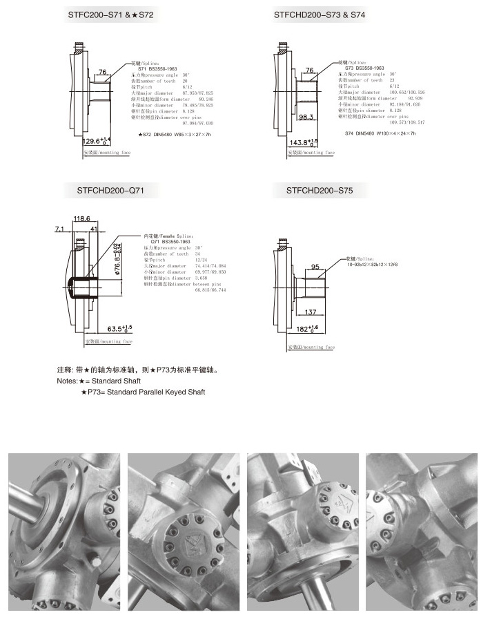 | (ml/r) | 額定壓力 | 尖峰壓力 | 額定扭矩 | 單位扭矩 | (Kw) | (Kg) | (r/min) | |