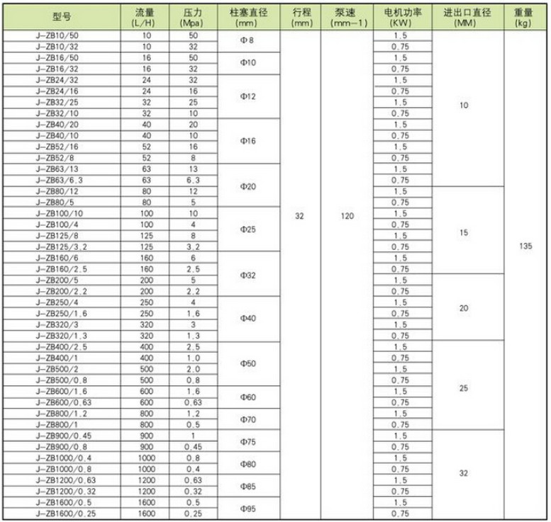 J-ZB-10/50,J-ZB-10/32,J-ZB-16/50,J-ZB-16/32,J-ZB-24/32,J-ZB-24/16,柱塞式計量泵