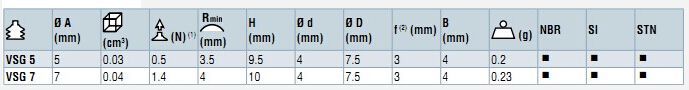 VSG系列通用吸盤(pán),波紋形2.5褶,Ø5和7mm兩種,材料:丁腈橡膠(NBR),硅膠(SI)。