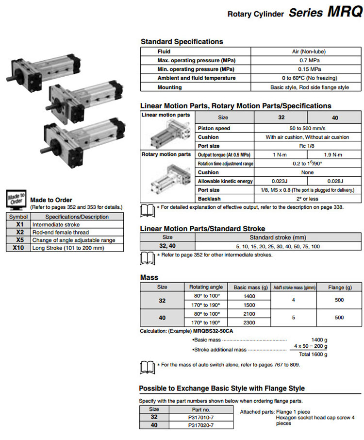 MRQBS32-5,MRQBS40-5,MRQFS32-5,MRQFS40-5,MRQBS32-10,MRQBS40-10,MRQFS32-10,MRQFS40-10,SMC伸擺氣缸
