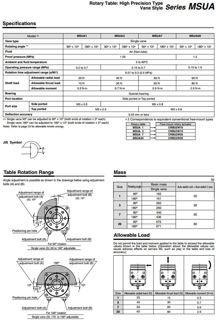 MDSUA1-90,MDSUA1-180,MDSUA3-90,MDSUA3-180,MDSUA7-90,MDSUA7-180,MDSUA20-90,MDSUA20-180,SMC擺臺氣缸