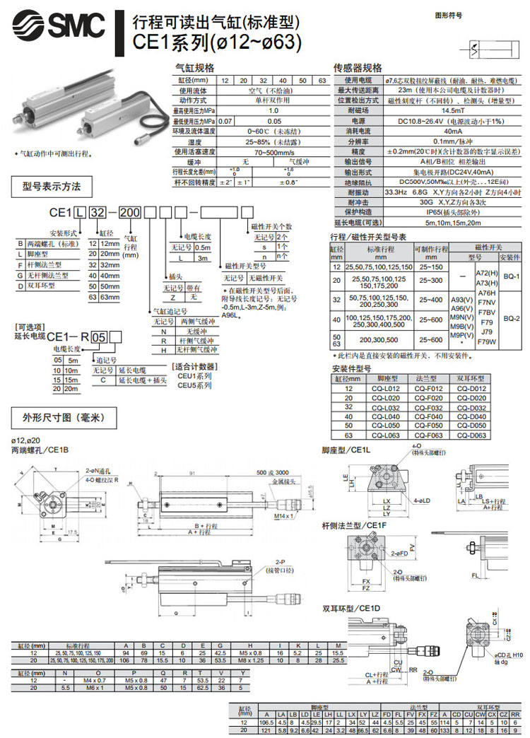 CE1B12-25,CE1L12-25,CE1F12-25,CE1G12-25,CE1D12-25,CE1B12-50,CE1L12-50,SMC行程可讀出氣缸