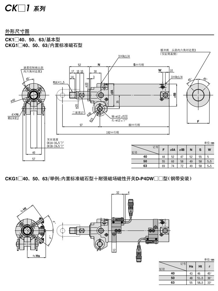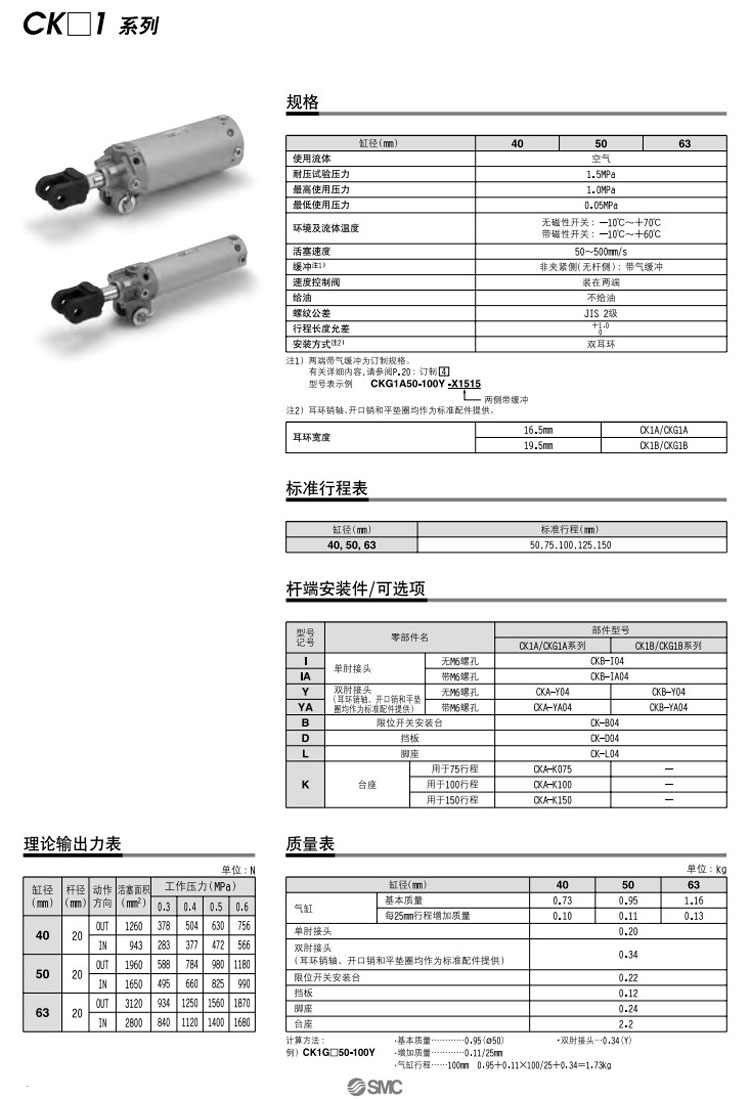 CK1A40-50,CK1A50-50,CK1A63-50,CK1B40-50,CK1B50-50,CK1B63-50,SMC夾緊氣缸