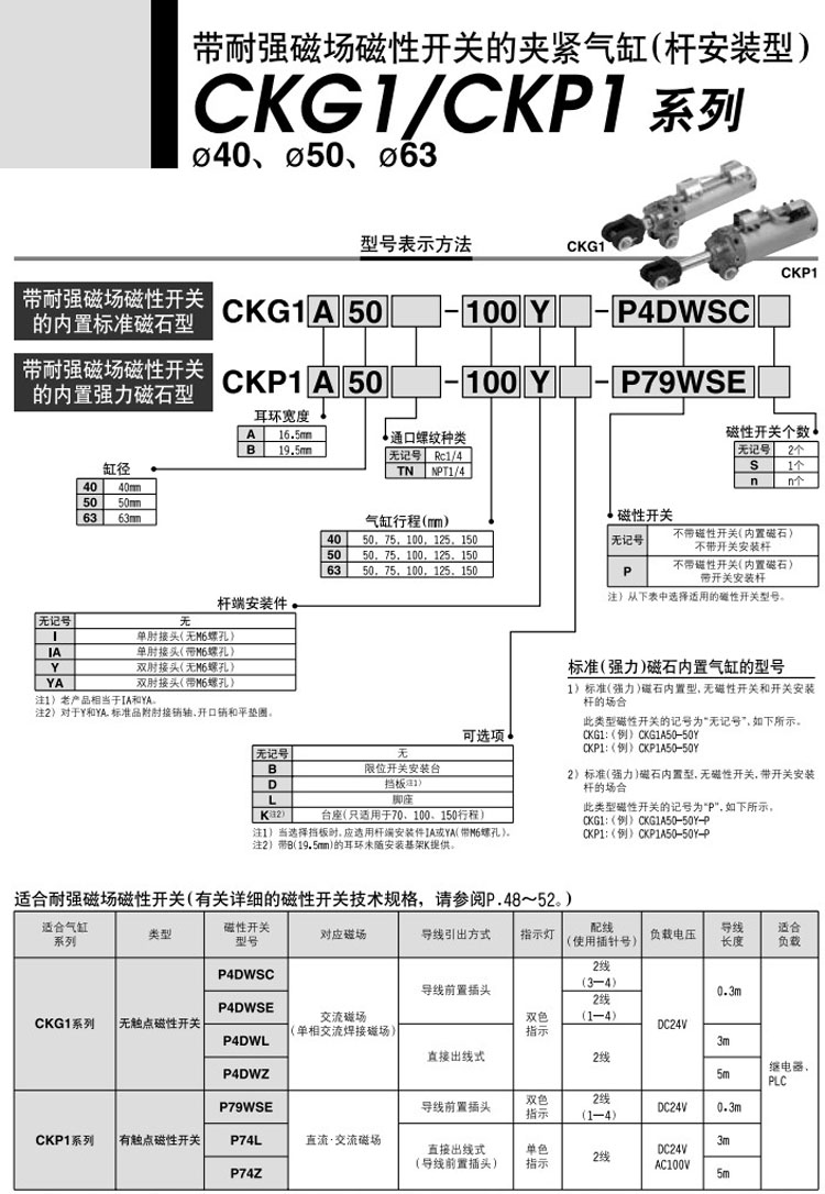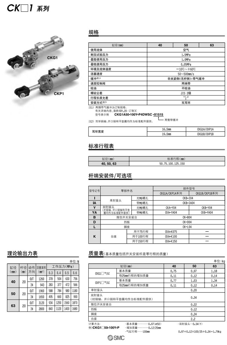 CKG1A40-50,CKG1A50-50,CKG1A63-50,CKG1B40-50,CKG1B50-50,CKG1B63-50,SMC夾緊氣缸