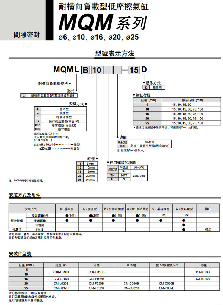 MQMLB6-15D,MQMLL10-15D,MQMLF6-15D,MQMLG6-15D,MQMLD6-15D,MQMLC20-15D,SMC低摩擦氣缸