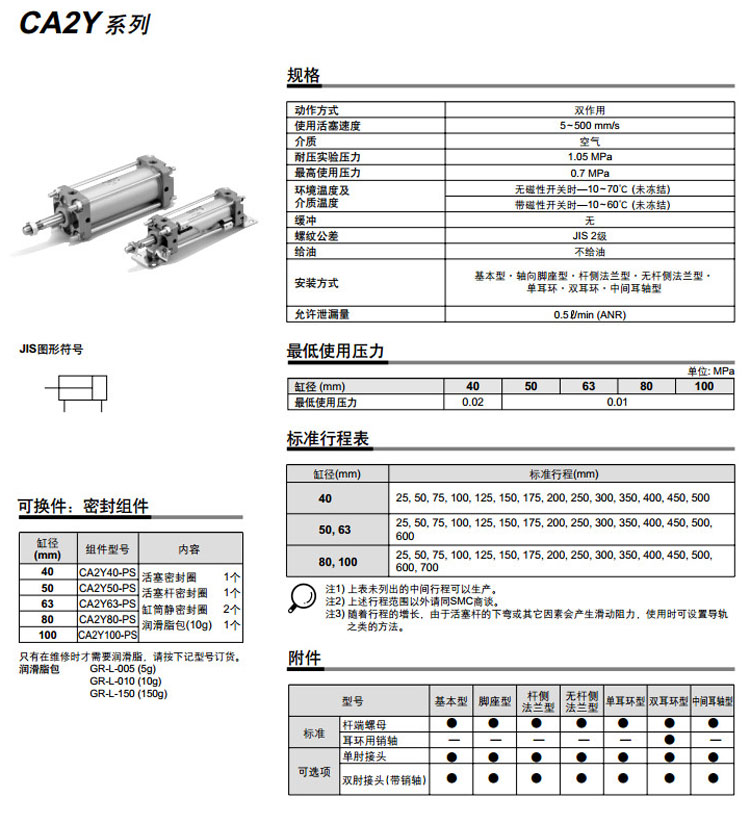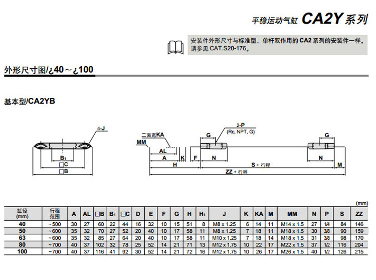CDA2YT80-350,CDA2YT80-400,CDA2YT80-450,CDA2YT80-500,CDA2YT100-500,CDA2YT100-600,CDA2YT100-700,CDA2YT100-450,SMC平穩運動(dòng)氣缸