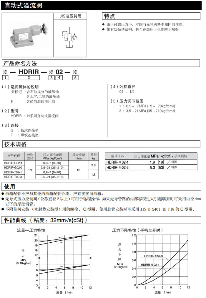 HDRIR-G02-1,HDRIR-G02-3,HDRIR-T02-1,HDRIR-T02-3,DAIKIN直動(dòng)式溢流閥