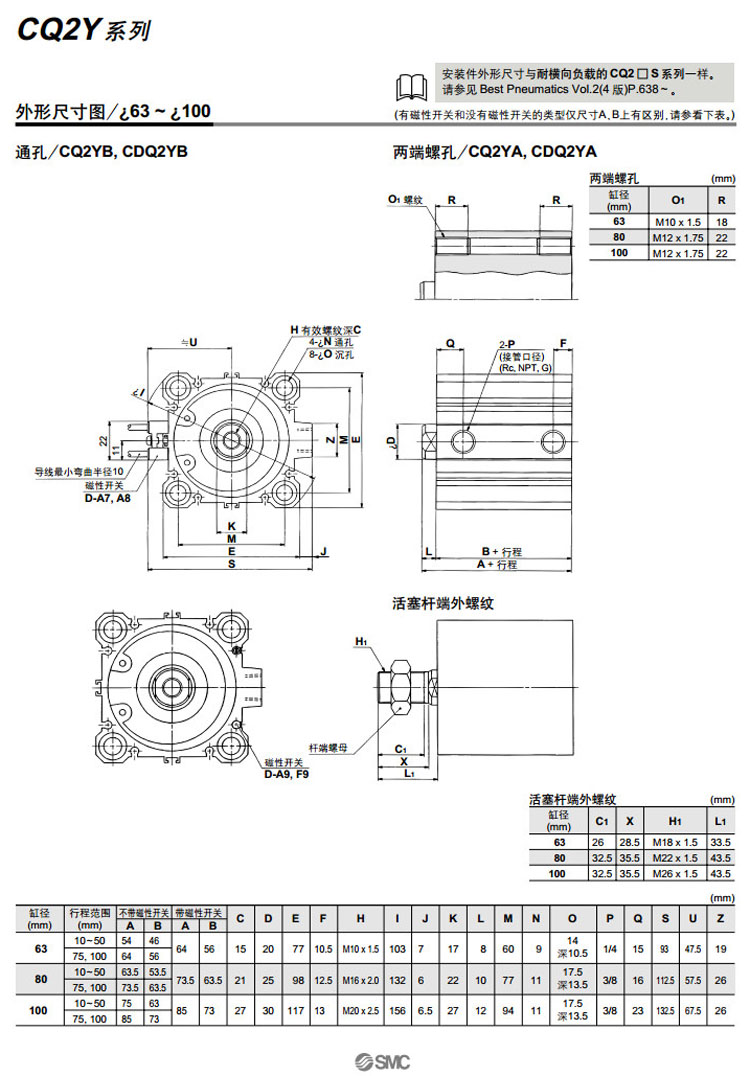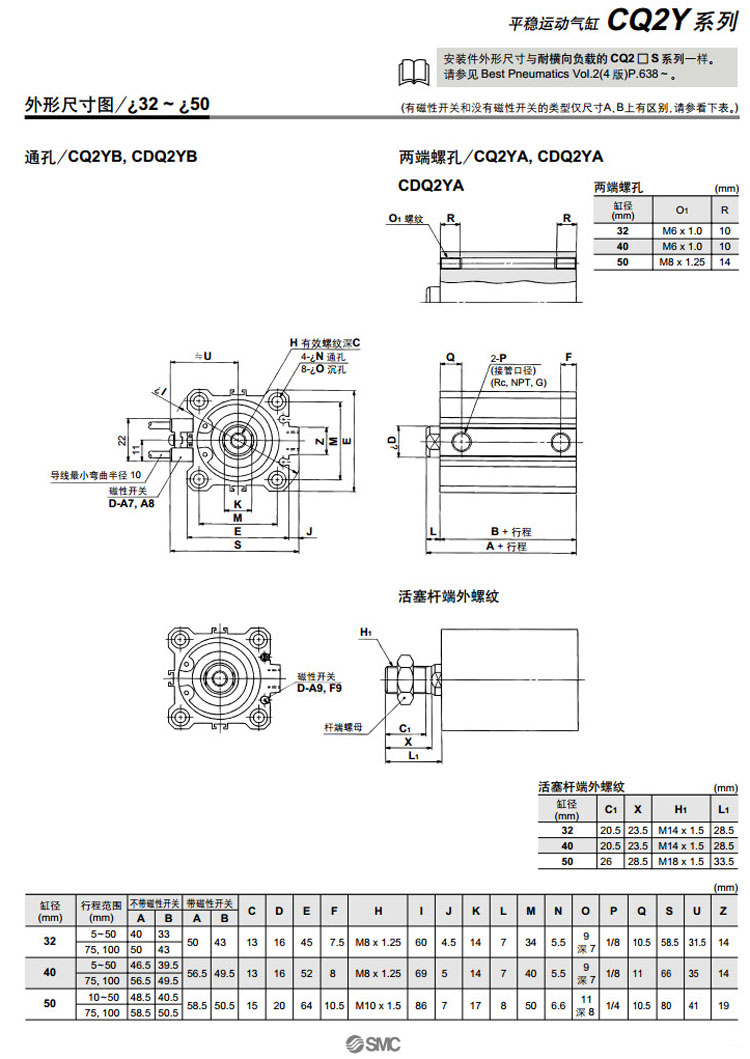 CQ2YB32-5,CQ2YA32-5,CQ2YL32-5,CQ2YF32-5,CQ2YG32-5,CQ2YD32-5,SMC平穩運動(dòng)氣缸