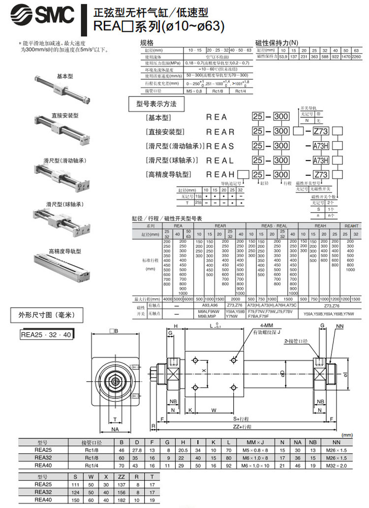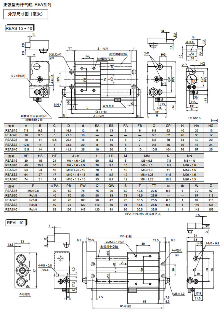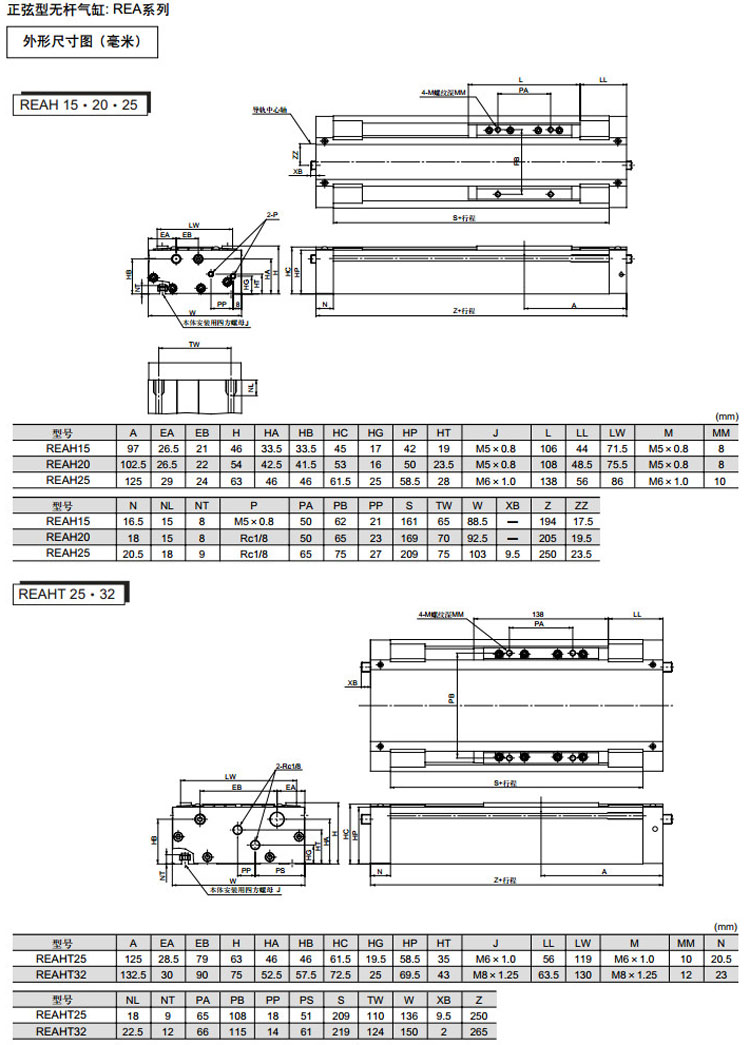 REB25-200,REB32-200,REB40-200,REB50-200,REB63-200,REB25-250,REB32-250,SMC正弦無(wú)桿氣缸
