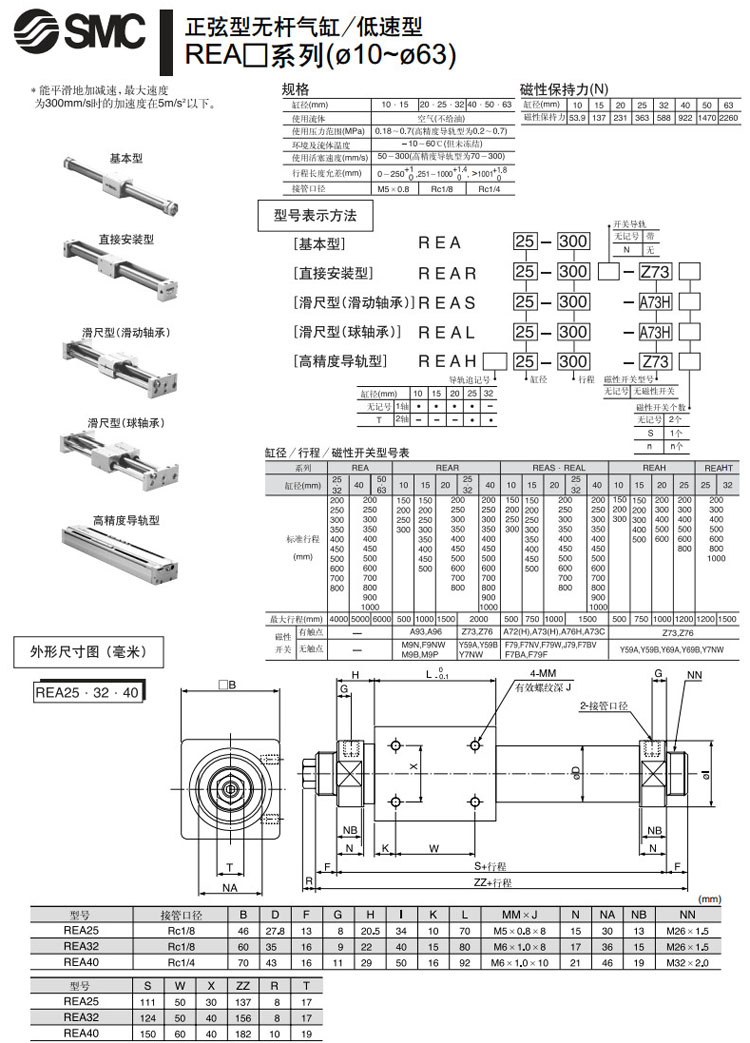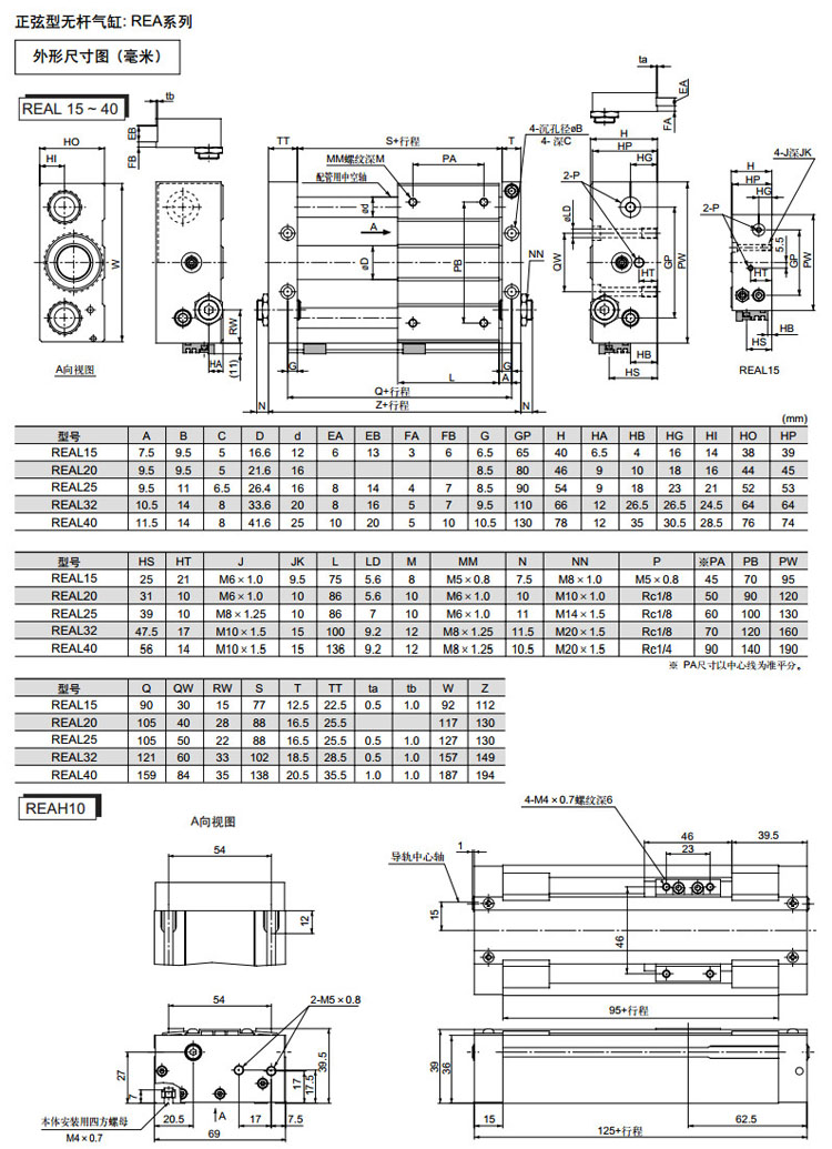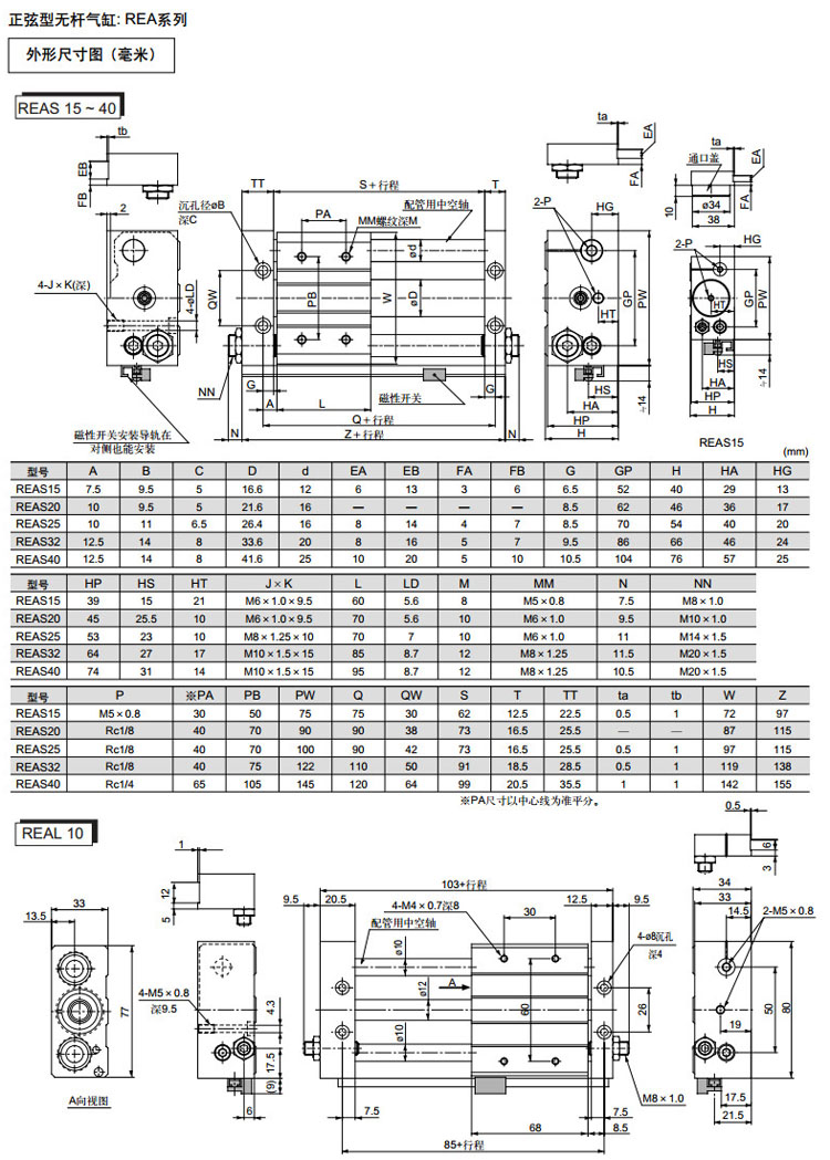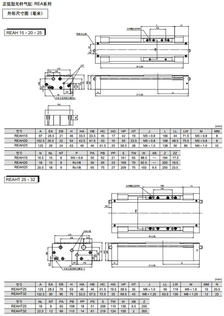 REAH10-150,REAH15-150,REAH20-200,REAH25-200,REAHT25-200,REAHT32-200,REAH10-200,SMC正弦無(wú)桿氣缸