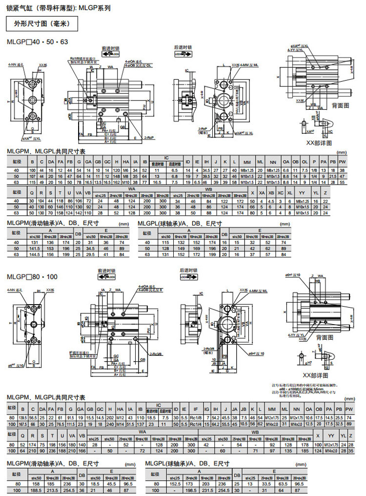 MLGPM20-20,MLGPM25-20,MLGPM32-25,MLGPM40-25,MLGPM50-25,MLGPM63-25,MLGPM80-25,MLGPM100-50,SMC鎖緊氣缸