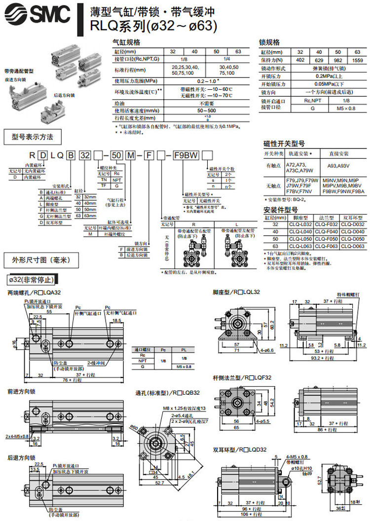 RLQD40-20,RLQD40-25,RLQD40-30,RLQD40-40,RLQD40-50,RLQD40-75,RLQD40-100,RLQD50-30,RLQD50-40,RLQD50-50,SMC薄型氣缸
