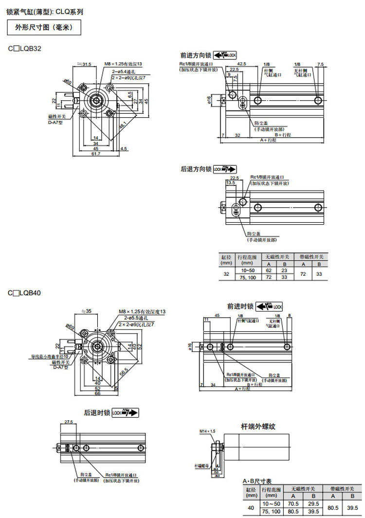 CLQB20-5D,CLQL20-5D,CLQF20-5D,CLQG20-5D,CLQD20-5D,CLQA32-10D,SMC薄型鎖緊氣缸