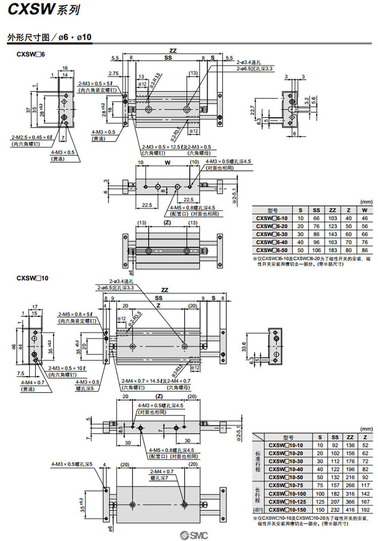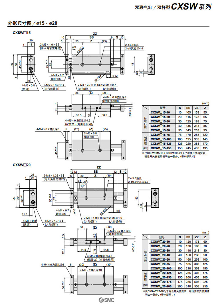 CXSWL6-10,CXSWL10-10,CXSWL15-10,CXSWL20-10,CXSWL25-10,CXSWL32-10,SMC雙聯(lián)氣缸