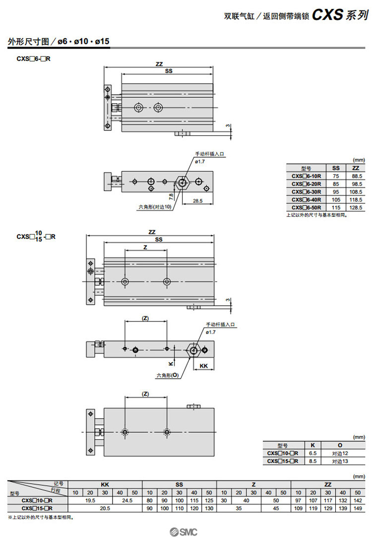 CXSM6-10R,CXSM10-10R,CXSM15-10R,CXSM20-10R,CXSM25-10R,CXSM32-10R,CXSM6-20R,SMC雙聯(lián)氣缸