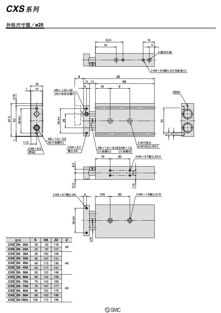 CXSM20-20A,CXSM25-25A,CXSM32-25A,CXSM20-25A,CXSM25-30A,CXSM32-30A,SMC雙聯(lián)氣缸