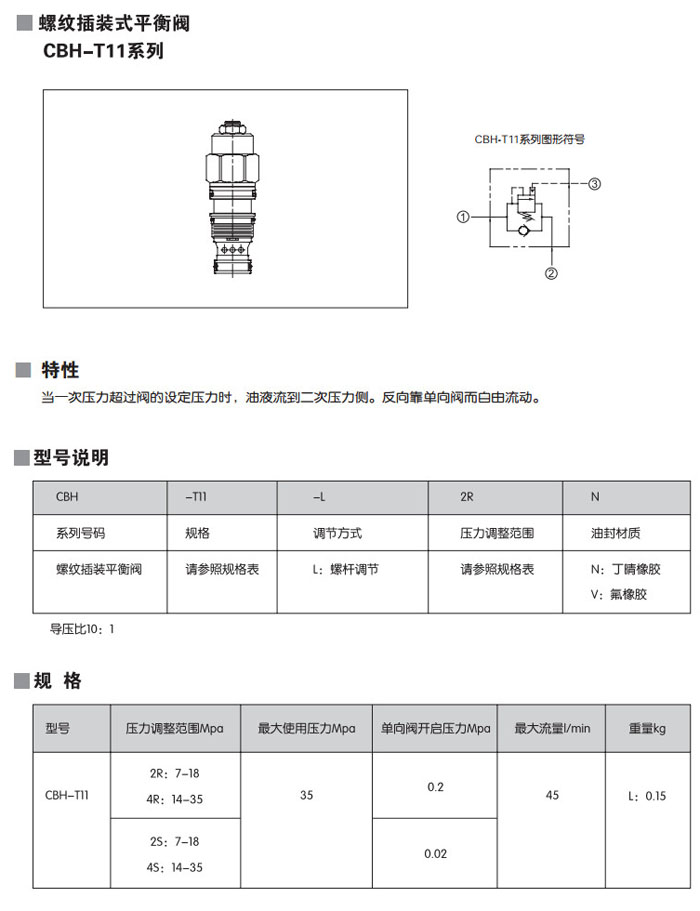 CBH-T11-L2RN,CBH-T11-L4RN,CBH-T11-L2SN,CBH-T11-L4SN,CBH-T11-L2RV,CBH-T11-L4RV,螺紋插裝式平衡閥