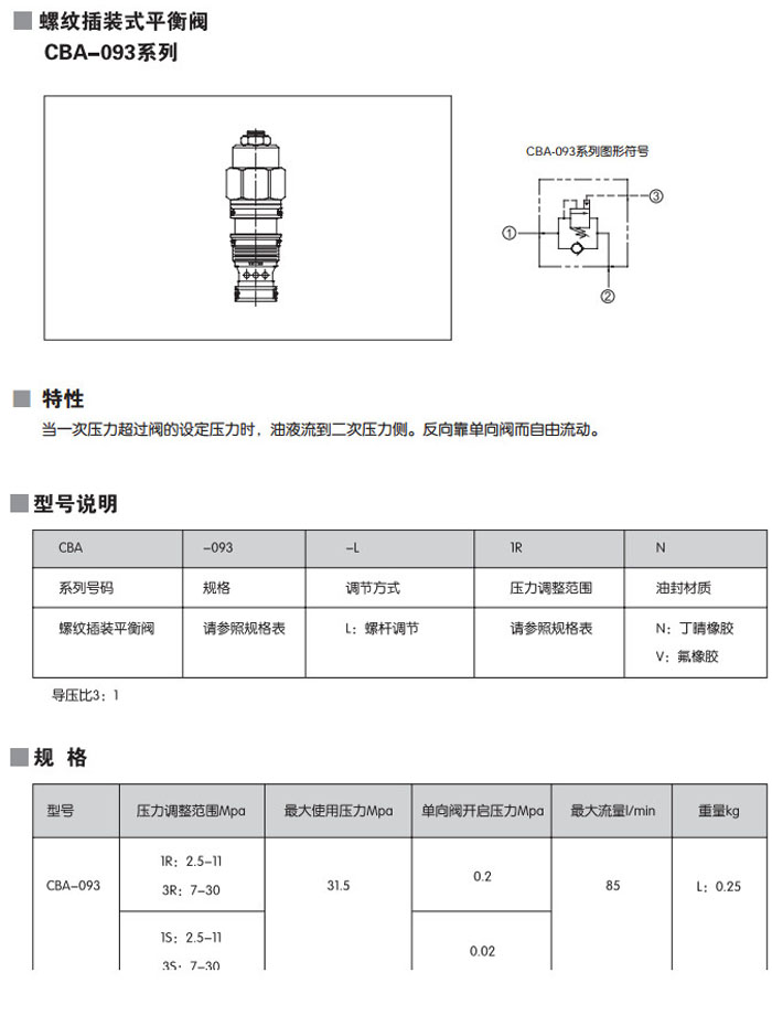 CBA-093-L1RN,CBA-093-L3RN,CBA-093-L1SN,CBA-093-L3SN,CBA-093-L1RV,CBA-093-L3RV,螺紋插裝式平衡閥