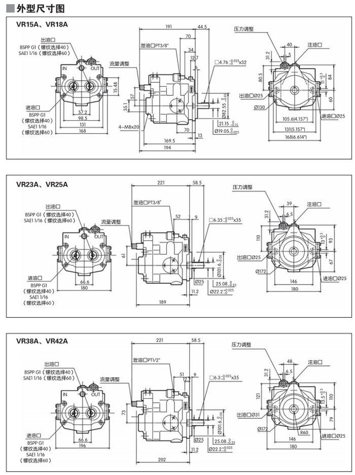 VR15A,VR18A,VR23A,VR25A,VR38A,VR42A,VR23A1RBS1,VR42A4RLS3,變量柱塞泵