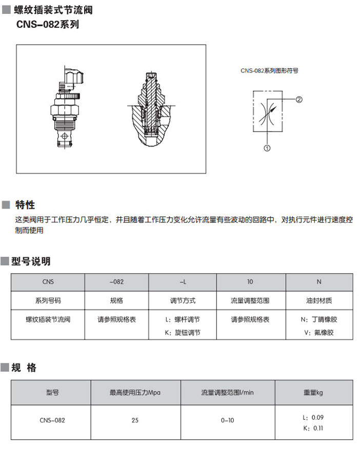 CNS-082-L10N,CNS-082-L10V,CNS-082-K10N,CNS-082-K10V,螺紋插裝式節流閥