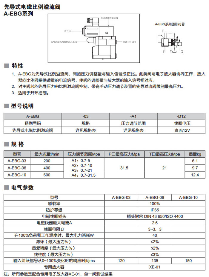 A-EBG-03,A-EBG-06,A-EBG-10,A-EBG-03-A1-D12,A-EBG-06-A1-D12,先導式電磁比例溢流閥
