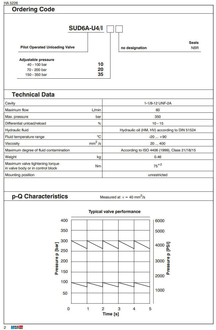 SUD6A-U4/I10,SUD6A-U4/I20,SUD6A-U4/I35,ARGO先導優(yōu)先卸荷閥