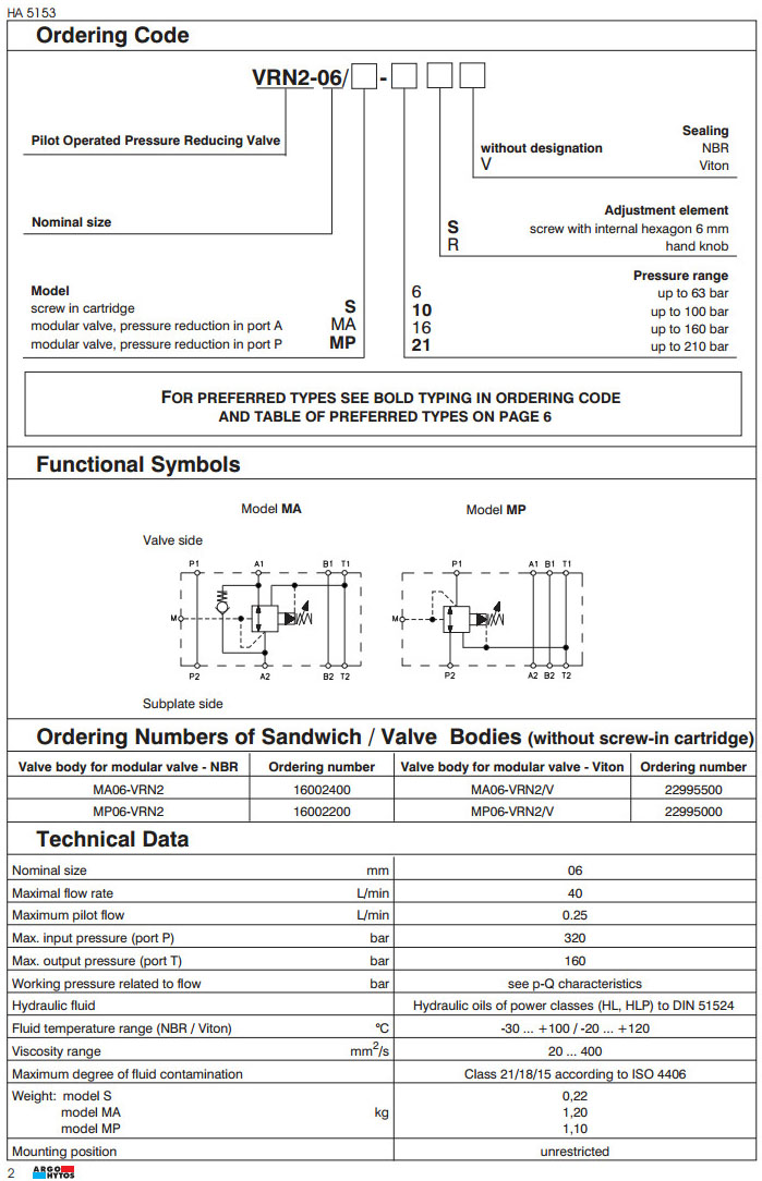 VRN2-06/S-10S 15997200,VRN2-06/S-21S 15997500,VRN2-06/MP-10S 15998400,VRN2-06/MP-21S 15999000,ARGO先導式減壓閥