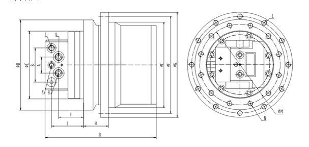 本產(chǎn)品為馬達與減速機一體的行走裝置。由集成于減速機內部的雙排量軸向柱塞馬達、行走減速器組成。馬達內置安全閥、防反轉閥、停車(chē)制動(dòng)裝置及高低二檔轉換裝置,它的特點(diǎn)是:傳動(dòng)比范圍大、結構緊湊、工作效率高、可靠性強、體積小、運動(dòng)平穩、噪音低等,同時(shí)具有多級安全保護、使用壽命長(cháng)等優(yōu)點(diǎn)。適用于液壓履帶驅動(dòng)行走裝置。